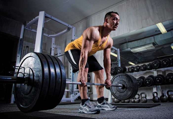 еперь присядь так, чтобы бедра были параллельно полу, чуть наклонись, но не округляй спину — она должна быть ровной, как доска. Подбородок поднят, глаза смотрят прямо перед собой. Грудь подай немного вперёд. Выпрямляя ноги, отрывай штангу от пола, гриф удерживай как можно ближе к полу. Когда ноги разогнутся почти полностью, распрями туловище. Сделай три сета по 4-6 повторение в каждом.