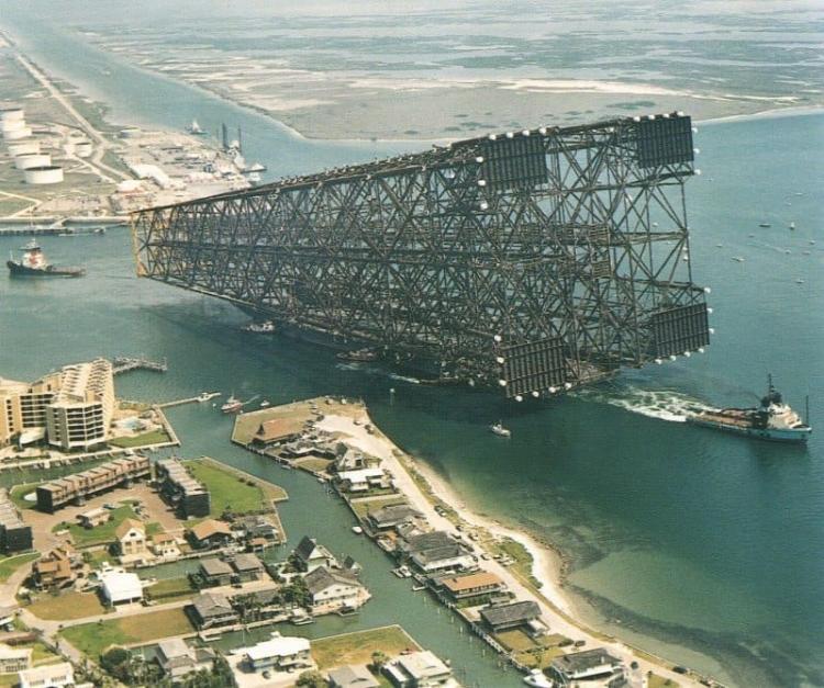 Великобритания, 1980 год. Перемещение основы буровой вышки к месту установки.