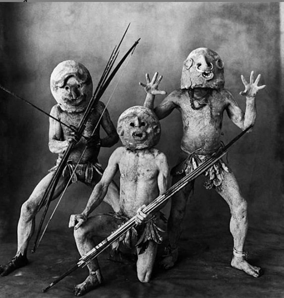 В 1970 году фотограф запечатлел племя папуасов, которое носит глиняные маски для устрашения врагов.