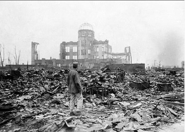 Мемориал мира в японской Хиросиме, 1945 год. На фото корреспондент, ошеломленный увиденным.