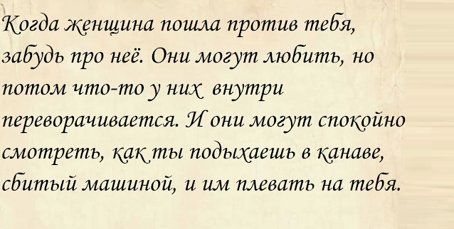 Поэтому, можно не любить его творчество, как и его самого, но в его выводах о женщинах есть что-то от истины.