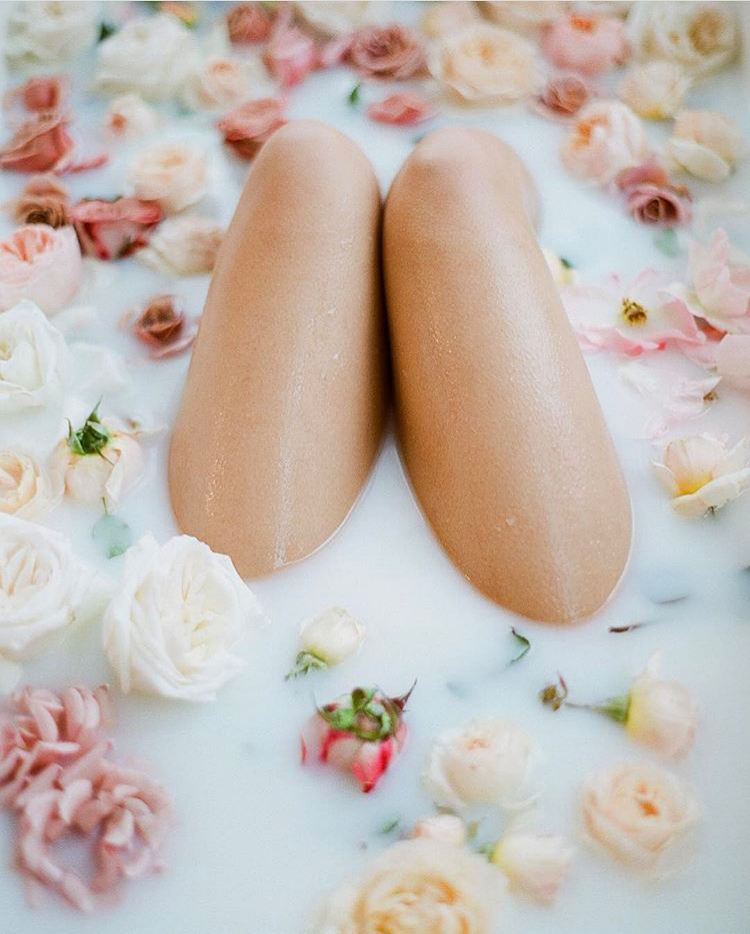 Рецепт очень простой: 1 литр молока на ванну, принимать которую можно так долго, как вам этого хочется. В молоко можно так же добавить эфирные масла, но с ними ванну можно принимать не дольше 20 минут.