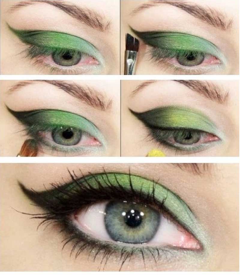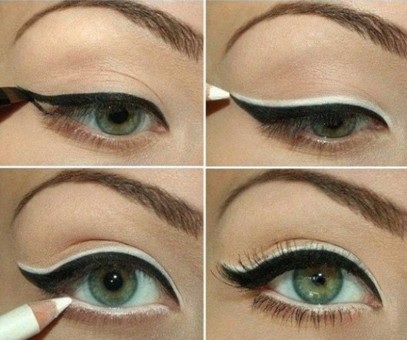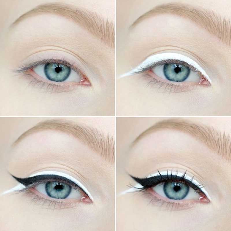 При таком необычном варианте макияжа важно, чтобы темная стрелка всегда была направлена вверх.