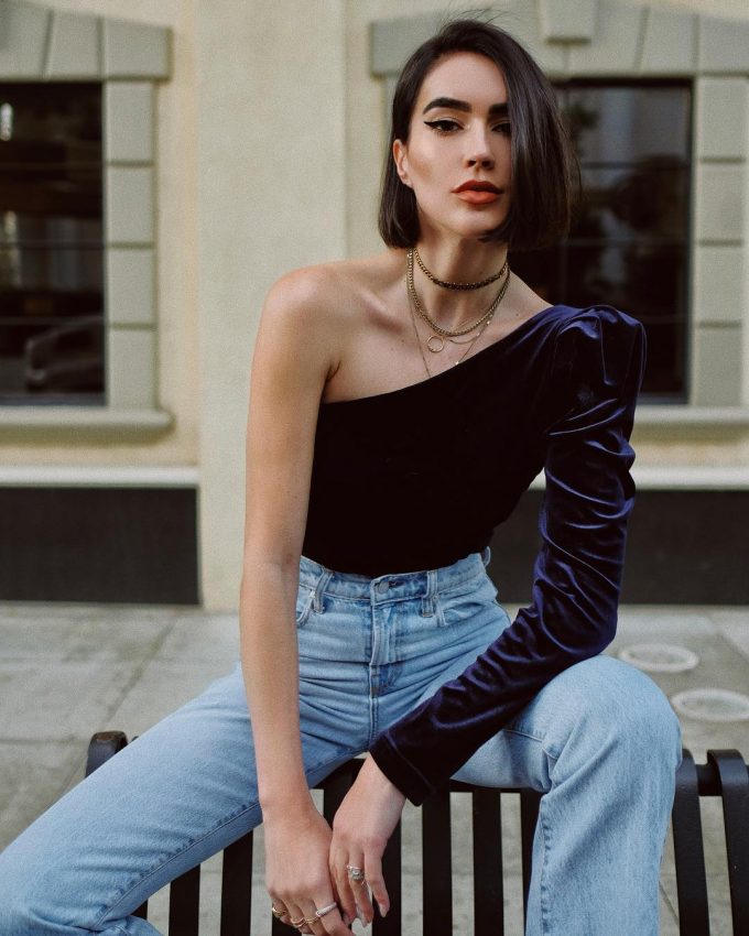 Очень стильно, но не особенно комфортно. А все потому, что вещи на одно плечо так и норовят постоянно соскользнуть и продемонстрировать куда больше, чем вам хотелось бы показать. Именно это и придает такой одежде своеобразный, но очень притягательный ореол модной небрежности и элегантности. Выбирайте одежду, которая будет слетать в меру и не поправляйте.
