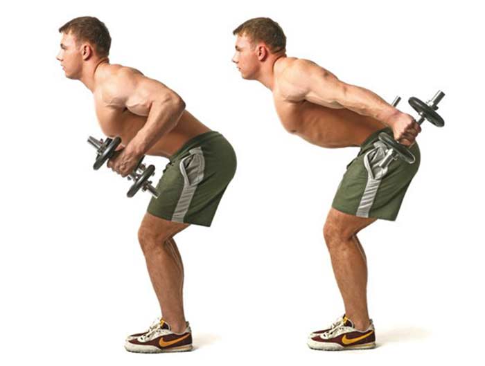 Наклонитесь вперед, держа ровную спину, и слегка согните ноги. Из этого положения отводите прямые руки назад, направляя их как можно ближе к корпусу. Постойте так несколько мгновений, не расслабляя мышцы спины, затем вернитесь в исходное положение.