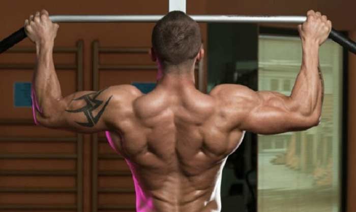 Затем подтянитесь как можно выше, пока не коснетесь перекладины затылком или подбородком. Чем шире ваш хват на перекладине, тем большая нагрузка ложится на широчайшие мышцы спины.
