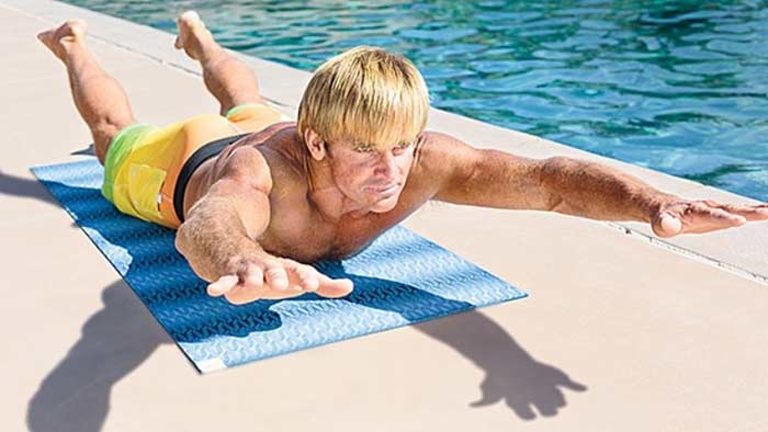 Из положения лежа на животе на вдохе поднимите верхнюю часть корпуса и потянитесь руками вперед и вверх. После чего согните руки и сведите лопатки вместе. Кисти рук должны быть выше локтей. С выдохом опустите корпус обратно, руками снова вытягивая вперед.