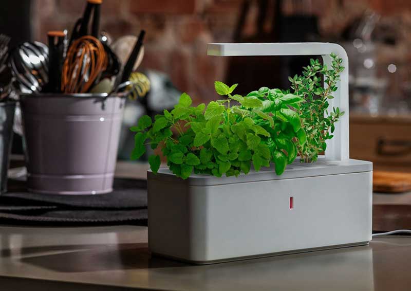 Этот вариант идеально подойдет любителям хай-тека. Умный сад состоит из трех картриджей, предназначенных для выращивания базилика, томата и перца. Благодаря специальным лампам и особой системе удобрения, картридж сам создает нужные условия для счастливого существования вашего сада. Все что вам нужно – иногда поливать его. Единственный минус – это удовольствие обойдется вам в $110.