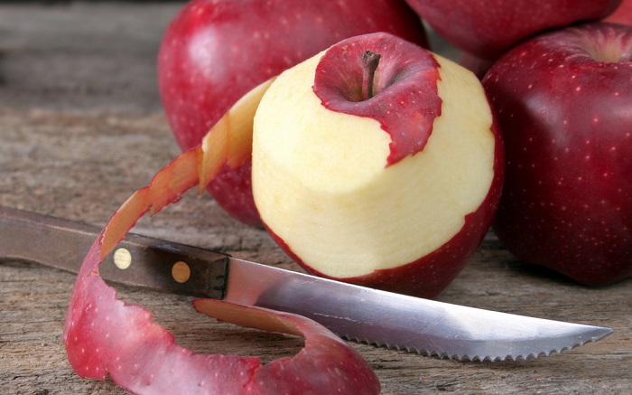Обратите внимание: Проверить, является ли яблоко и, соответственно, кожура, полезными, можно следующим образом: разрежьте фрукт напополам и подождите несколько минут. Если яблоко потемнеет, значит, в нем нет вредных веществ и кожуру можно употреблять в пищу.