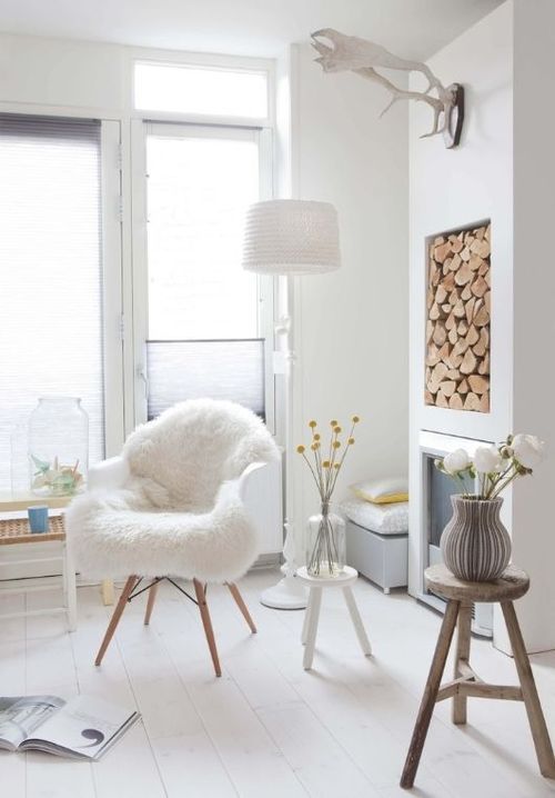 Нижний свет, свечи, натуральные шкуры и другие предметы, которые при все своей простоте создают ощущение тепла и уюта в доме.
