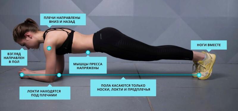1. Планка (2 мин). Лягте на живот и, опираясь на локти и пальцы ног, приподнимитесь. Крайне важно, чтобы живот не провисал, спина не прогибалась, а попа не торчала кверху. Упражнение прорабатывает абсолютно все группы мышц.