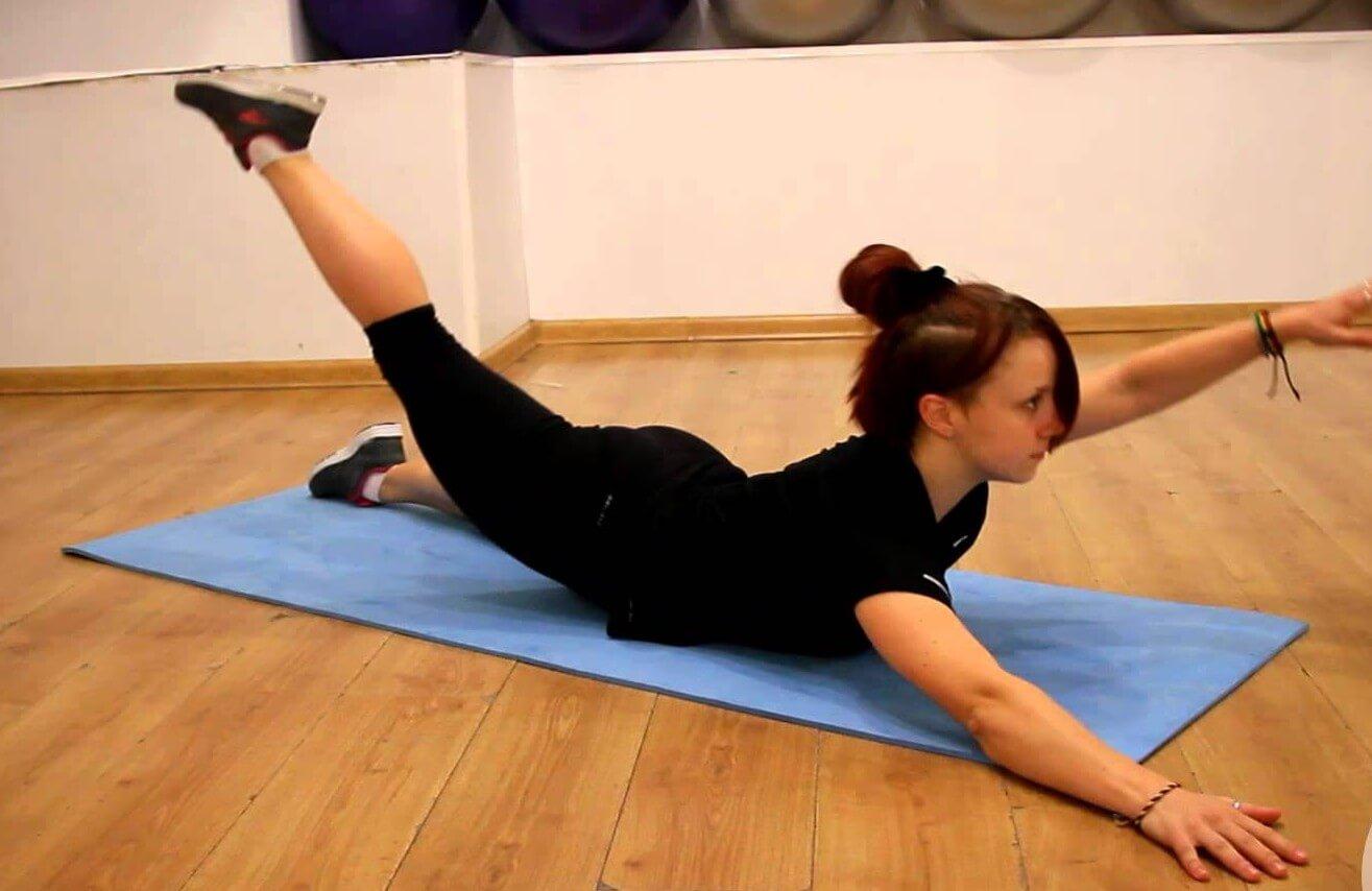 3. Бедра + ягодицы (1 мин). Станьте на четвереньки, выпрямите и поднимите одну ногу как можно выше и параллельно проделайте то же самое с противоположной рукой. Чередуйте ноги и руки.