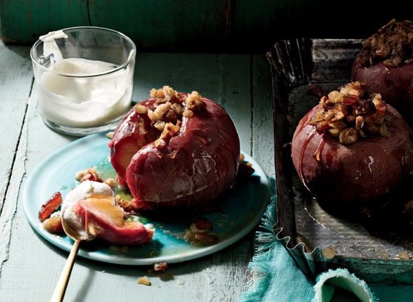 Время приготовление может меняться в зависимости от размеров и плотности выбранных яблок. В начинку можно добавлять любые орехи и сухофрукты.