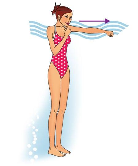 Бокс. Стоя в бассейне по шею, необходимо совершать движения руками, как будто, вы боксируете.