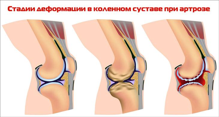 - Деформация. Редко проявляется на начальных этапах, если причина не в травме колена.