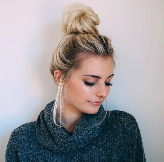 Прежде чем скручивать волосы в узлы или пучки, их нужно художественно растрепать или предать им разнородную текстуру с помощью плойки (накрутить несколько прядей, которые придадут нужной неразберихи), 1-2 косичек и т. д, начесов и т. д. Ну а как только у вас на голове организовался нужный mess, можно приступать ко второй части укладки – узлам и пучкам.