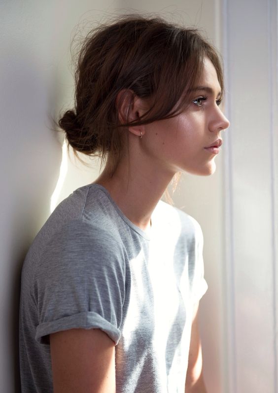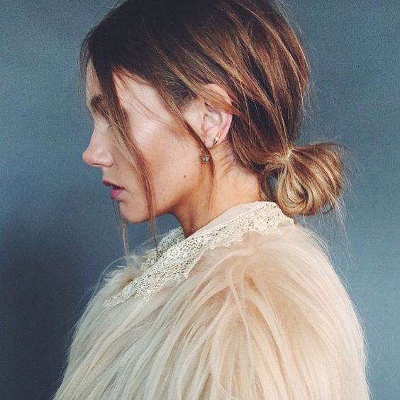 Knot, или узел — это небрежность, возведенная в квадрат: волосы просто собираются в хвост и перехватываются петлей с помощью резинки, раз-два. Торчащие кончики прядей придают нужный градус анархии. Messy knot может быть обычным (петля на затылке) или низким петля у основания шеи (делается низкий хвост, который затем перехватывается резинкой в петлю).