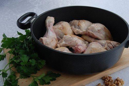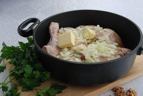 1. Мясо курицы помыть, разрезать на кусочки, сложить в хорошо разогретую толстостенную кастрюлю и слегка обжарить.