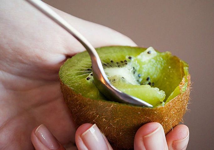Из-за того, что киви помогает нормализовать пищеварение, диетологи советуют его есть после всей трапезы. Киви предотвратит тяжесть в желудке, а также поможет почкам. Считается, что фрукт способствует выведению лишней жидкости из организма.