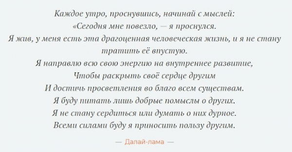 Одну важную аффирмацию Далай-лама поведал миру, и ее повторяют про себя все люди мира каждое утро. Ее следует разобрать по частям.