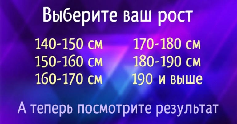 Пройди прямо сейчас удивительный тест о твоем росте, который расскажет о тебе много интересного!