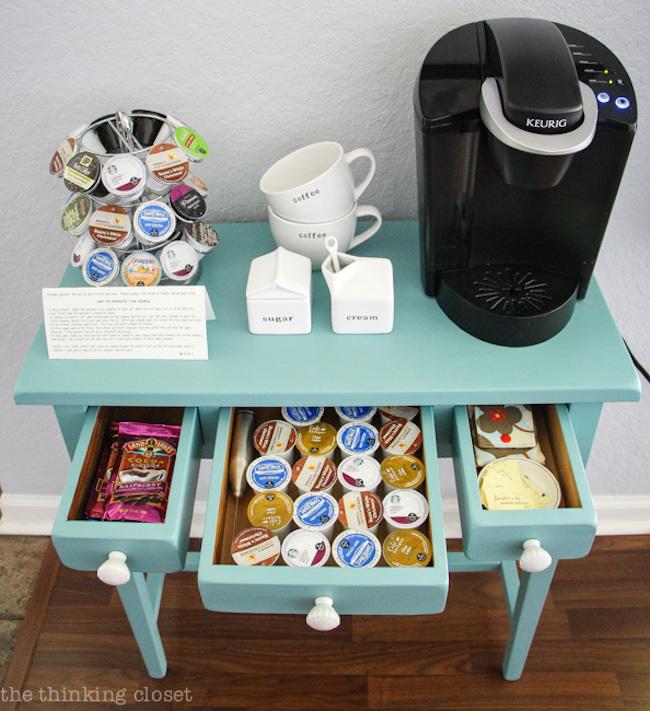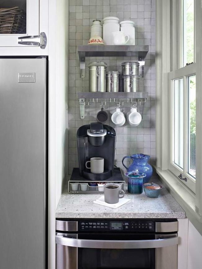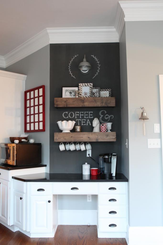 Творческим особам – творческая обстановка. Пришла холодная погода и дни становятся короче, в такое время кофе всегда актуально. Во многих случаях, люди часто заталкивают свои огромные кофемашины в угол или ищут какое-либо свободное пространство на столешнице. Но если вы часто пьете кофе и любите приглашать гостей, тогда вы должны подумать о создании своей маленькой выделенной кофе-станции, если у вас есть место для нее. Взгляните на 20 идей, возможно, они вас вдохновят…