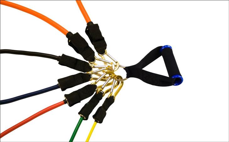 Часто тренажер продается с набором резинок разных цветов, чтобы пользователь имел возможность подобрать нагрузку по своим возможностям.