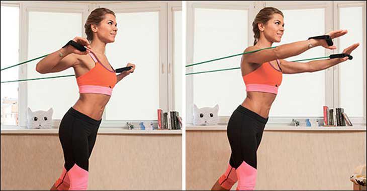 - Отведения рук в стороны стоя — 2-3 сета по 15-20 повторений