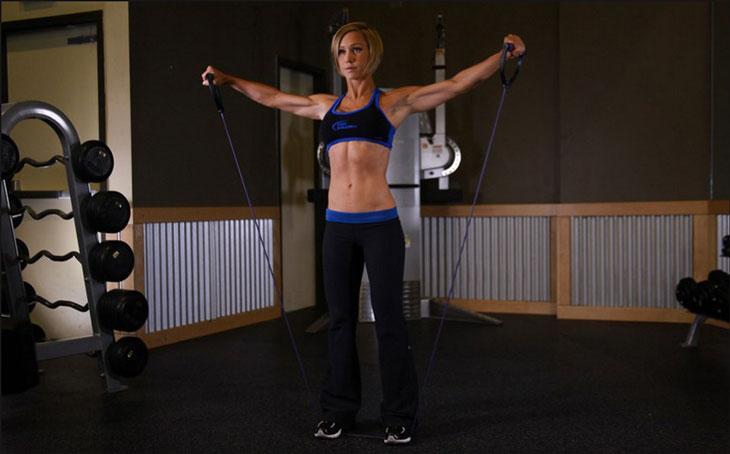Также не забудьте увеличить нагрузку путем подбора эспандеров. Как вы помните, они различаются по цвету в зависимости от сопротивления растяжению. Ваши цвета это красный, синий или черный (фиолетовый). Остальные оставьте дамам. Число повторений снизьте до 10-15.