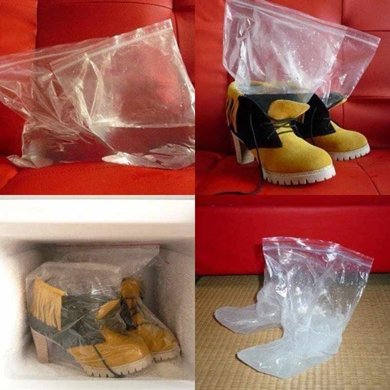 Провернуть этот трюк сможет любая, так как он не требует каких-либо навыков. Вам понадобится холодильник, два пакета и немного терпения. Заморозить мешок воды в вашей обуви – одно из распространенных удобных средств. Все знают, что вода расширяется при замерзании. Если вода замерзнет в обуви, она ее расширит и растянет.