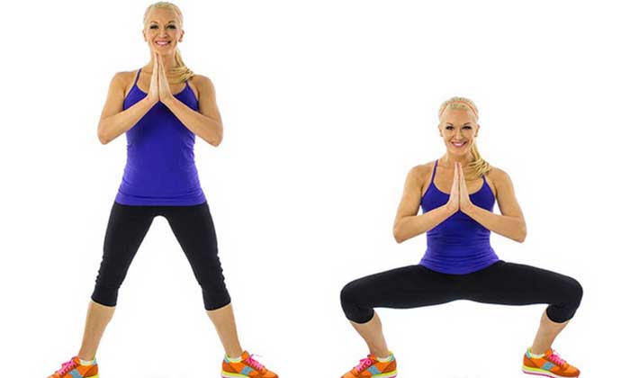 - Для стройных ног. Подсушить область бедер можно с помощью упражнения плие. Это присед с очень широкой постановкой ног, при этом колени должны быть направлены в стороны. Приседать надо до положения, пока бедра не станут параллельны полу.