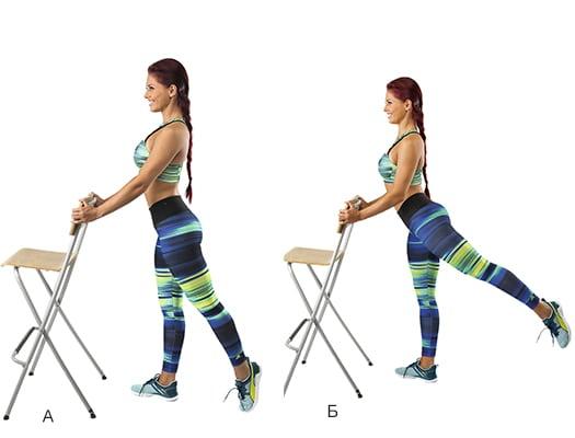 - Также задействовать ягодичные мышцы можно с помощью выпадов. ИП – стоим прямо, ноги на ширине плеч. Делаем шаг вперед и приседаем. Можно делать выпады в сторону или назад.