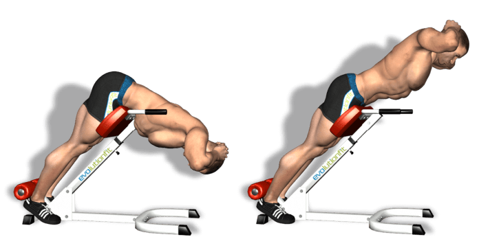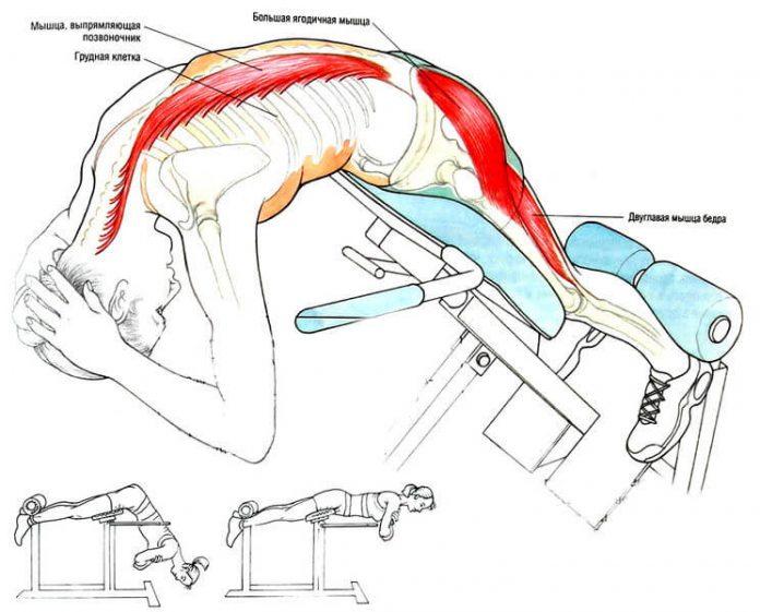 Гиперэкстензия невероятно хорошее упражнения как для мышц спины так и для здоровья позвоночника (отлично растягивает грыжи межпозвоночных дисков, проверено на себе)