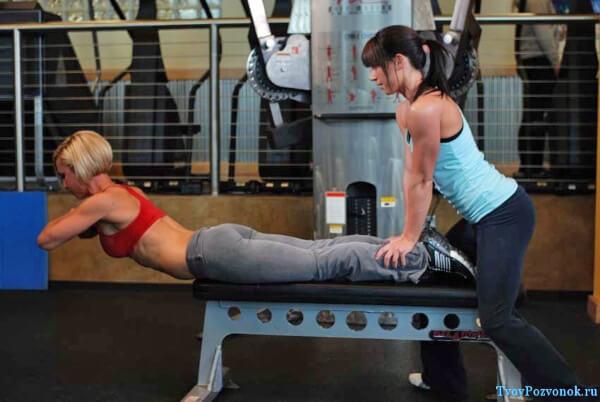 Гиперэкстензию можно делать двумя способами. Условно все разделяют их на женский и мужской.