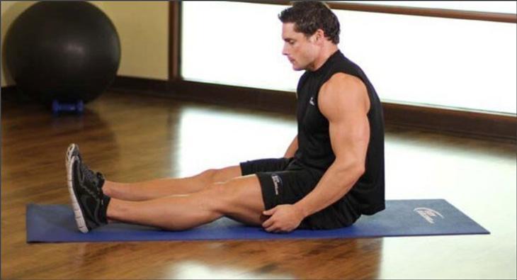 Садимся на ягодицы на полу. Ноги выпрямляем перед собой – таким образом между ногами и туловищем должен образоваться прямой угол. Корпус и плечи держим ровно и прямо. Важно контролировать осанку при выполнении.
