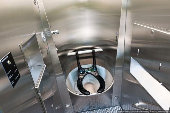 Кабинка милая, уютная, одноместная, что весьма кстати. Все очень чисто. кругом расположены датчики, управляет которыми компьютер. Бросаешь в прорезь двери монетку 2 евро, двери автоматически открываются, зажигается свет, заходишь, двери закрываются. У меня нет клаустрофобии, но так как всю жизнь проработал с техникой знаю, что она имеет свойства глючить, от этого немножко стало не по себе.