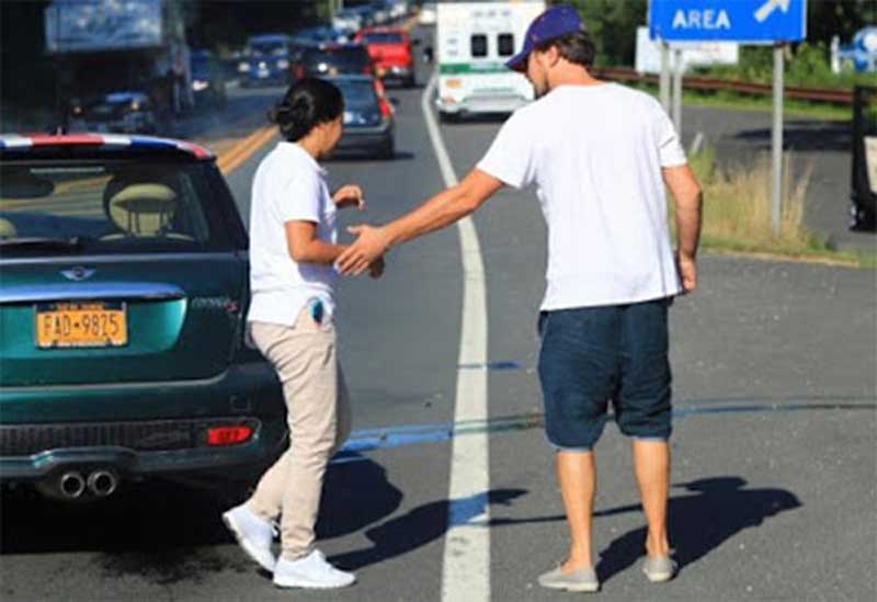 Что сделал Лео? Узнал у своей подруге, всё ли с ней в порядке, затем вышел из автомобиля и помог женщине, которая нарушила ПДД, а она была иммигранткой!