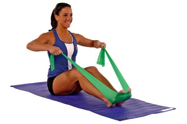 - Занятия с эластичной лентой – хороший вариант для тех, кто не может прыгать. Усиливает нагрузку и вызывает повышение ЧСС, при этом безопасно для суставов.
