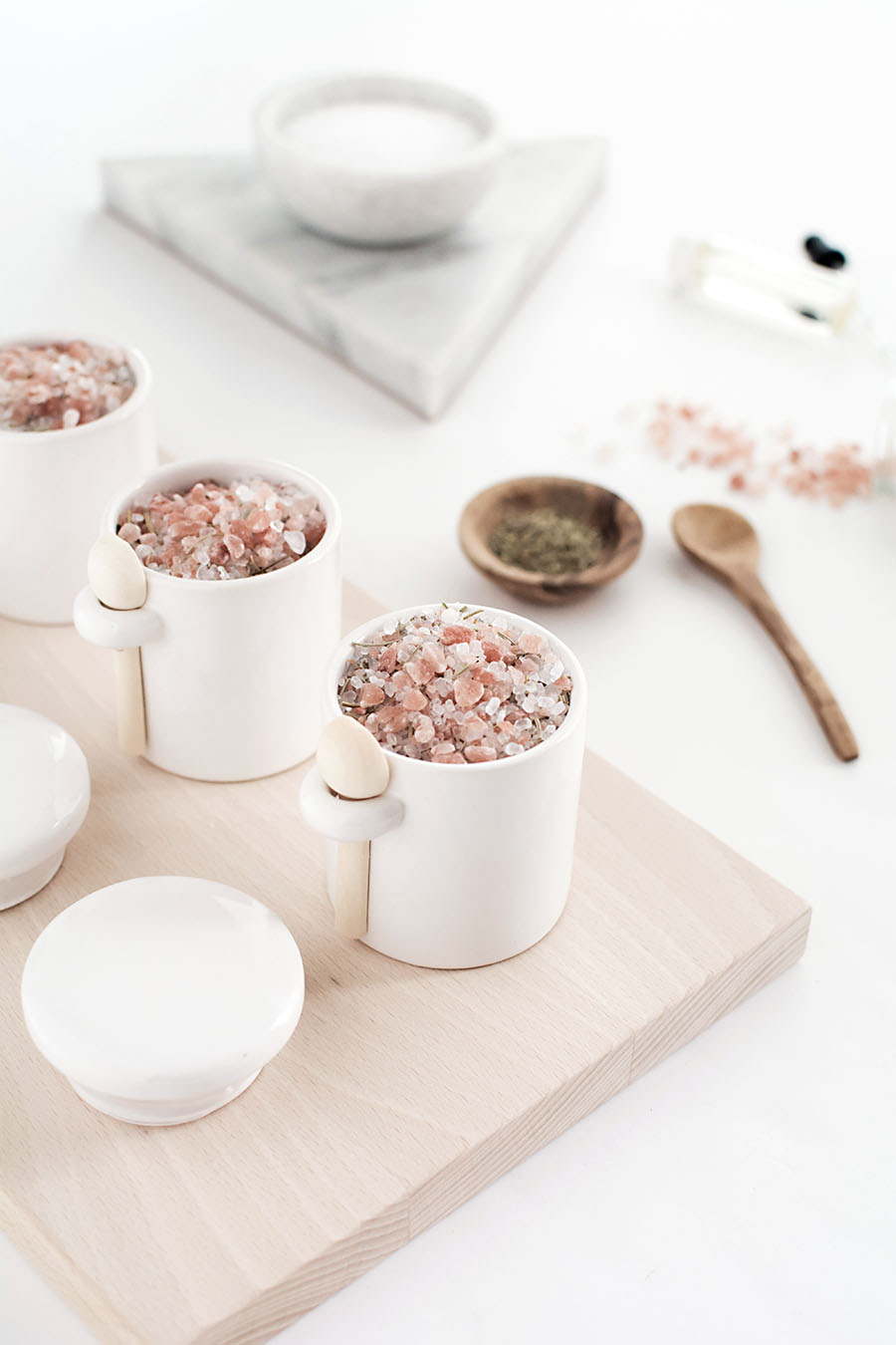 Сделать свою ароматическую соль очень просто: купите в аптеке простую морскую соль, и добавьте перечисленные выше смесь в чашку с двумя столовыми ложками этой соли. Если вы хотите добавить увлажнения и ухода за кожей, то можно добавить к соли 1 ст ложку масла (миндального, оливкового, масла лесного ореха). Как следует все перемешайте, добавьте в горячую воду, и выйдите из ванны на 2-3 минуты, чтобы пары эфирных масел раскрылись и поднялись. После этого возвращайтесь и принимайте ванну. А если вы чувствуете, что заболеваете и вам нужно что-то более радикальное, то почитайте этот пост.