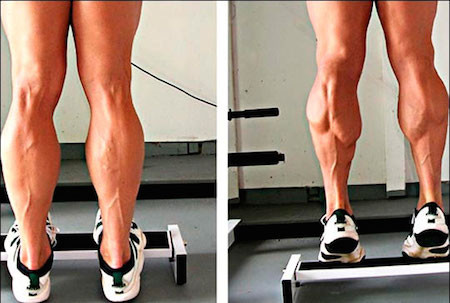 Если ваша задача прокачать икры, то и здесь два наших снаряда придут на помощь. Берете их в руки и выполняете подъемы на носки. Их можно делать как на одной ноге, так и на двух. В том случае, когда нога развернута носком наружу, то будет нагружаться внутренняя часть голени.