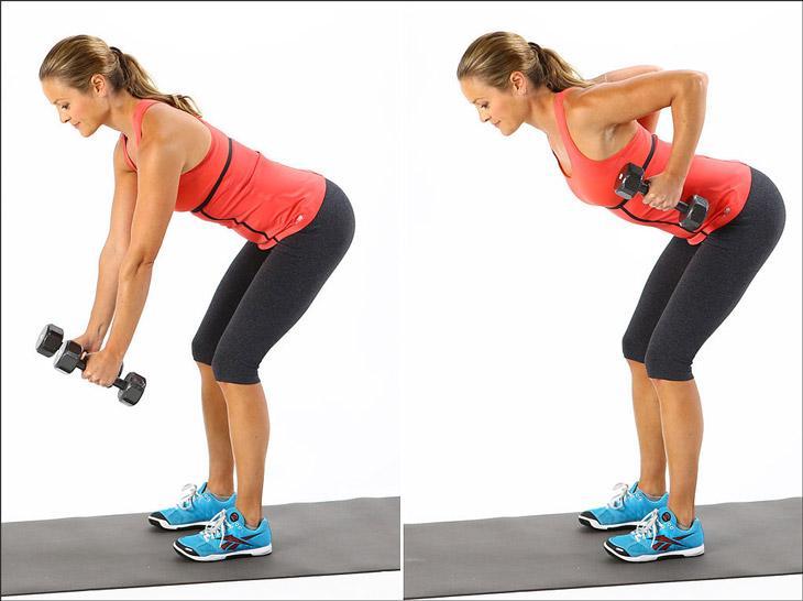 - Наклоны с гантелями – выполните 10 повторений