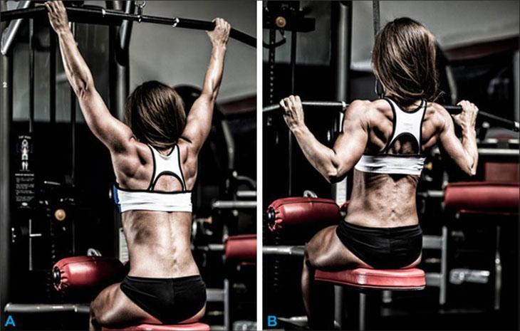 В качестве упражнения имитирующего подтягивания подойдет тяга вертикального блока к груди или тяга гантели к поясу в наклоне.