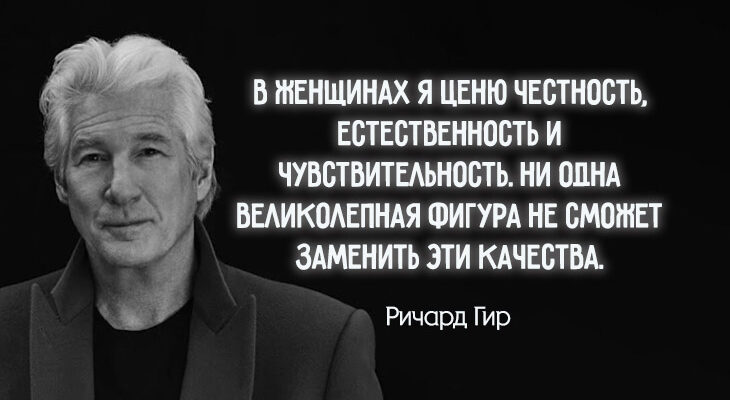 «Часто мы не обращаем внимание на конкуренцию, колкости, непрошенные советы и отсутствие эмоционального тепла в общении с друзьями, но все это откладывается в подсознании. Мы можем не понимать, почему тот или иной человек взывает у нас напряжение, дискомфорт или неприязнь, хотя мы давно знакомы и явных причин противиться общению нет — это сигнал о том, что отношения создают напряжение, которое мы игнорируем или оправдываем — оно откладывается глубоко в подсознании, накапливается и дает такой эффект — ваше тело и разум точно знают, кто им не по нраву и рядом с кем появляется напряжение. Лишь с возрастом я научился не игнорировать это» — Ричард Гир.