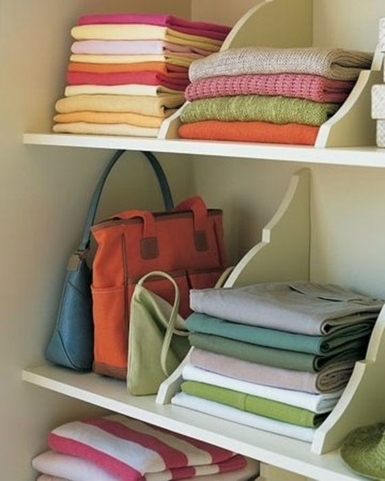 Благодаря этому они не потеряют форму. Для сумок же можно выделить верхние полочки. Чтобы аксессуары не помялись, стоит набить их бумагой. Тогда они будут держать форму.