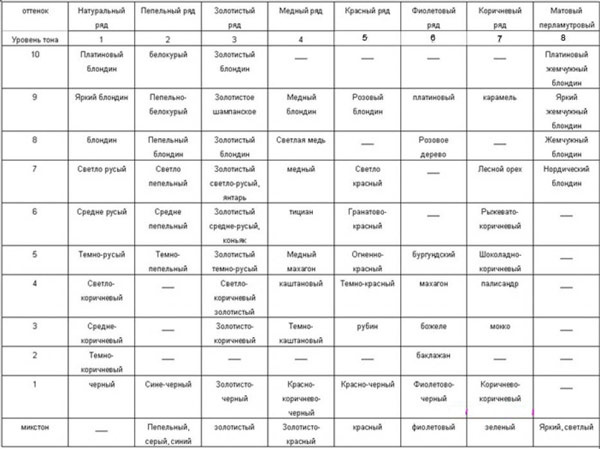 Следует помнить, что 1-й и 2-й оттенки относят к холодным, прочие — к теплым.