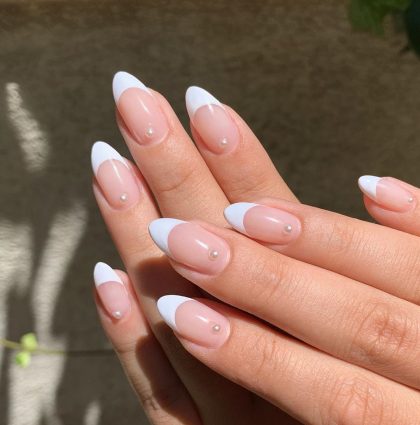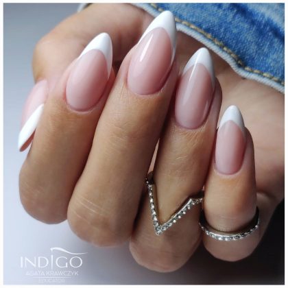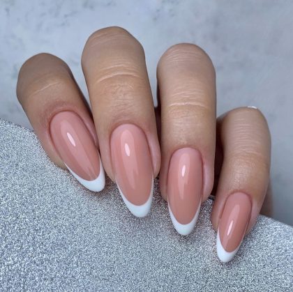 Классический френч на миндалевидных ногтях