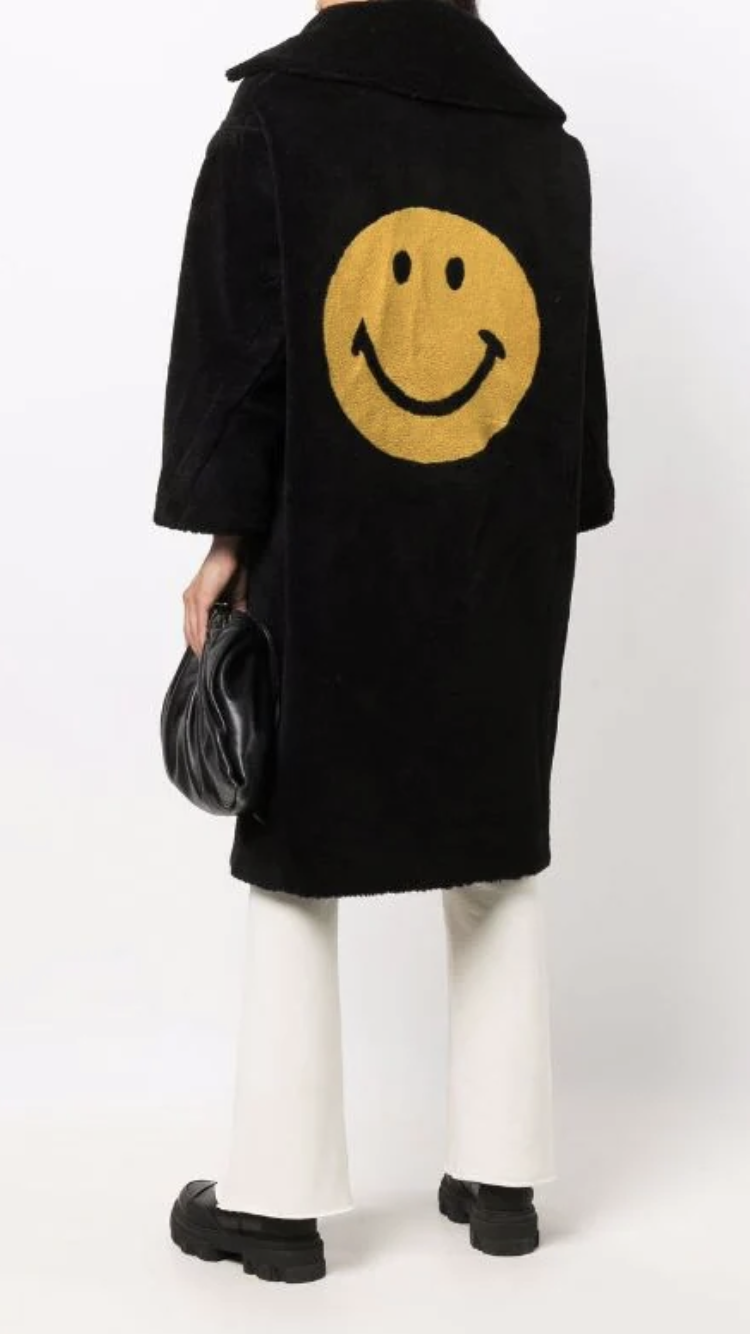 Также на смену китчу приходит минималистичный дизайн и самоирония. Альтернативой псевдо-гламурного мехового монстра может стать прямая шуба-оверсайз из искусственного волокнас забавным принтом.