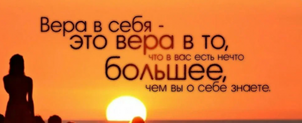 Вообще, вера в себя – это своеобразная мотивация для жизни, стимул для роста. Например, если вы знаете, что справитесь с задачей, то получите невероятный опыт. Если же вы считаете, что задача слишком сложная для вас, не по силам, то значит отсутствует вера.
