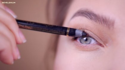 Чтобы щадяще прокрасить межресничное пространство, нужно завести карандаш под корни ресниц так, чтобы его грифель располагался практически параллельно волоскам и совершить подкручивающее движение.