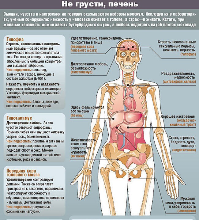 Повышенная раздражительность, несдержанность, гнев, ярость, ненависть, стремление выплеснуть претензии на других / Селезенка, печень и желчный пузырь / Всем знакомо выражение «держит камень за пазухой». Это значит, что человек затаил злобу на кого-то и ждет момент, чтобы побольнее ударить. Тогда возникают предпосылки к образованию камней в органах. В тех случаях, когда несдержанность не знает меры, негативные эмоции бушуют, туманят разум, т. е. человек «перегибает палку», могут возникнуть перегибы желчного пузыря